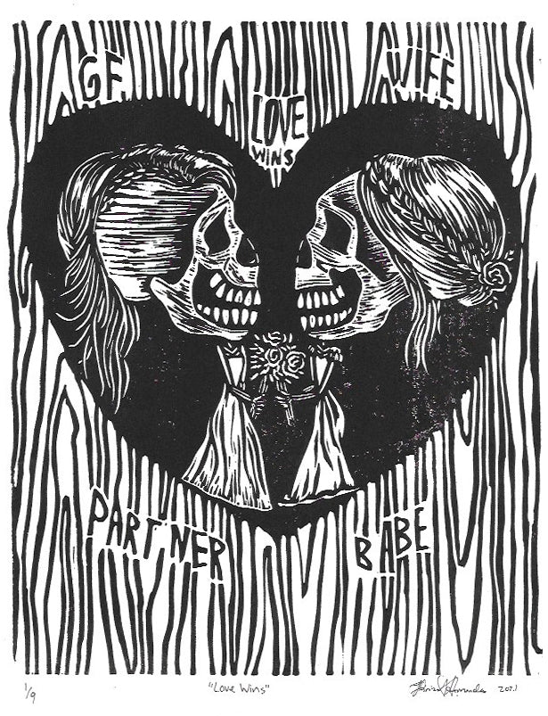 Celebrating all forms of love, here is 1 of a set of 6 original hand carved linoleum prints.